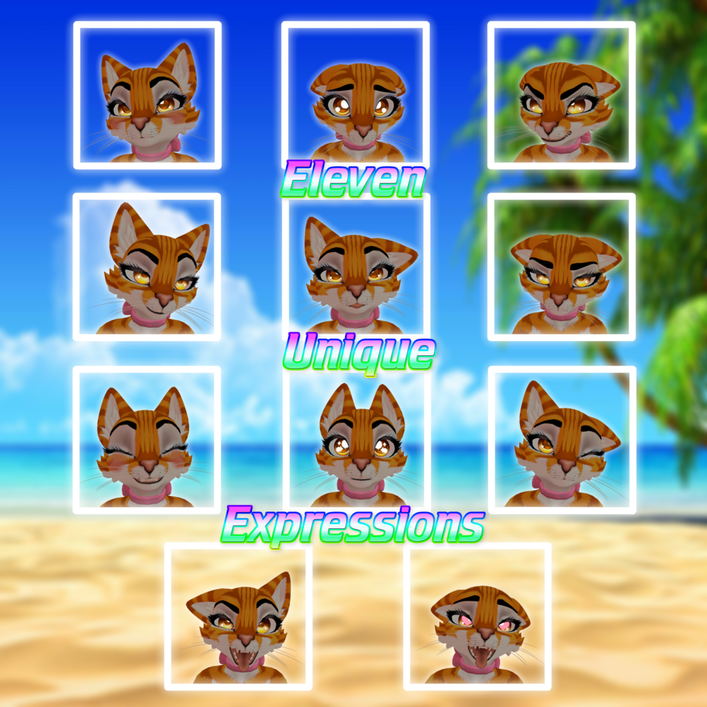 - Physbones set up for 6 recolored variants (Calico, Tuxedo, Tabby, Lioness, Lynx, Cheetah)